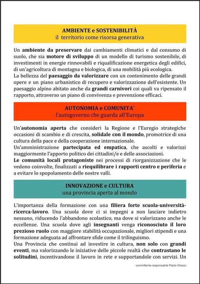 Non è stata colta, soprattutto dal PD, l'unica vera novità di questa tornata elettorale con la proposta di candidatura di Paolo Ghezzi e la formazione Futura2018. Se le forze del centrosinistra autonomista avessero avuto quello scarto di coraggio e di lungimiranza necessari nei momenti topici non avrebbero perso questa occasione, scegliendo Ghezzi candidato presidente. Così definita, l'asse della coalizione avrebbe coinvolto anche le sinistre più radicali in una sorta di "Trentino Bene Comune" che ha avuto nelle formazioni nate ad Arco e a Riva del Garda tra il 2014 e il 2015 un possibile prodromo politico e amministrativo.