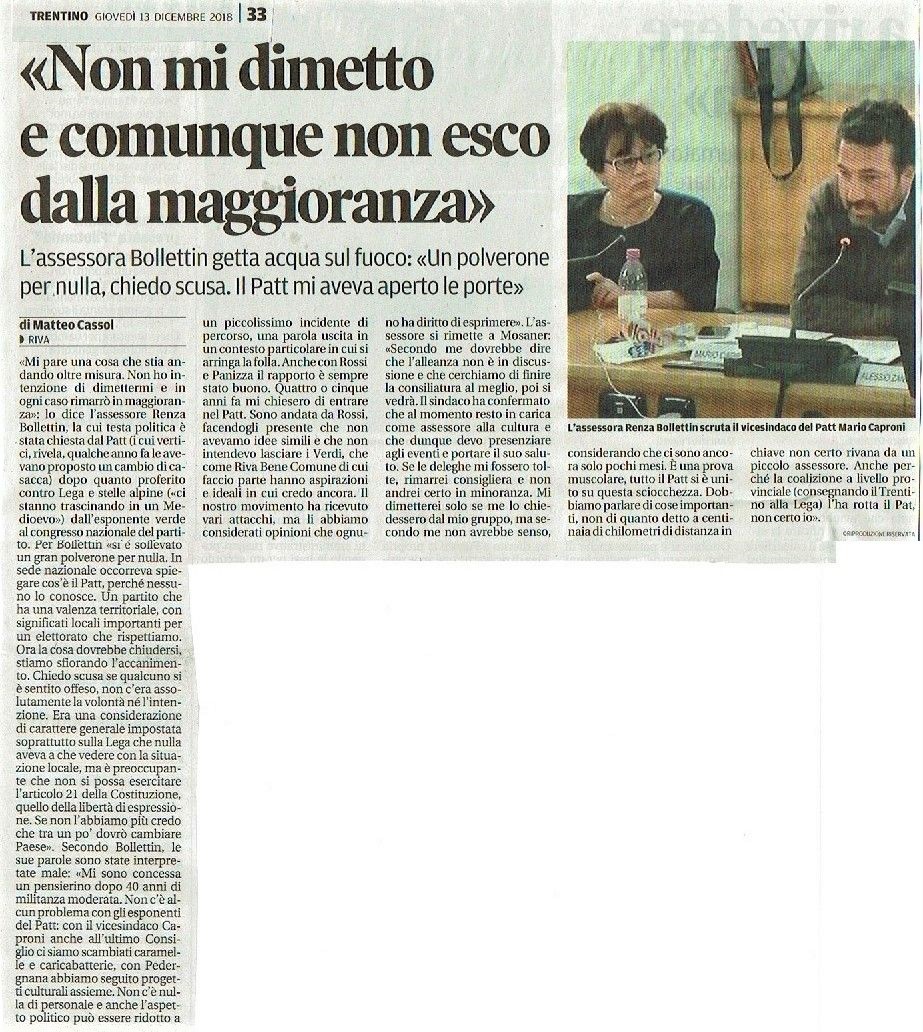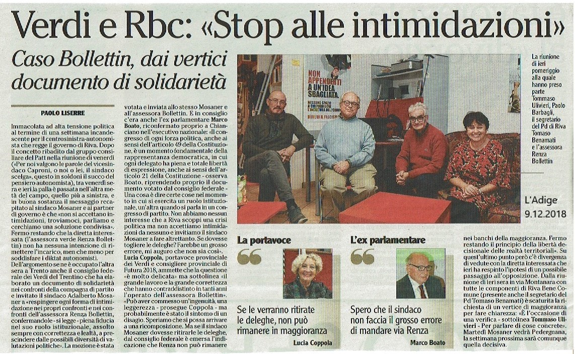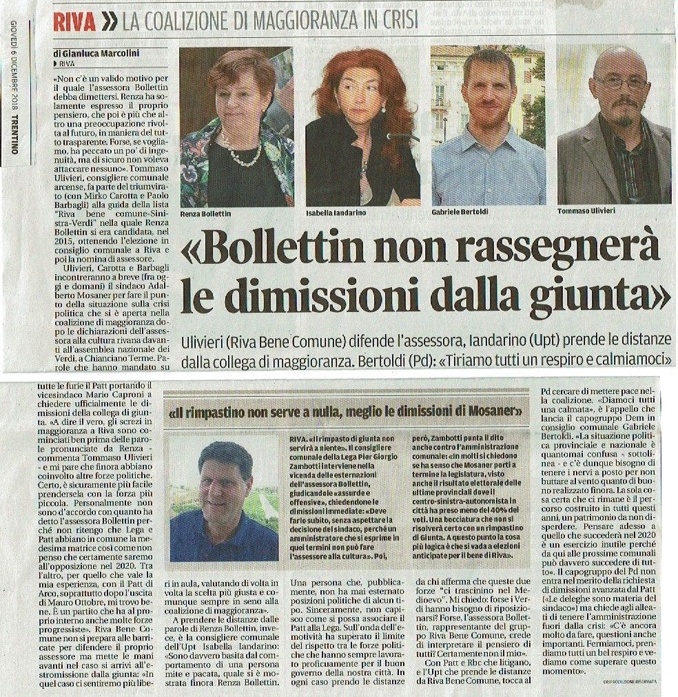 Per questo Riva Bene Comune e Arco Bene Comune hanno appoggiato le liste della Sinistra per il Trentino e Futura2018, sapendo che la quasi elezione di Antonella Valer avrebbe dato una complementarietà di intenti al lavoro di opposizione che ora attende Paolo Ghezzi e Lucia Coppola.